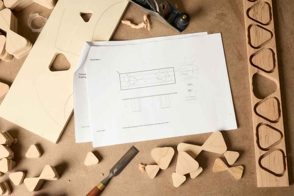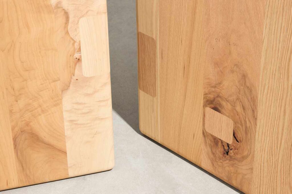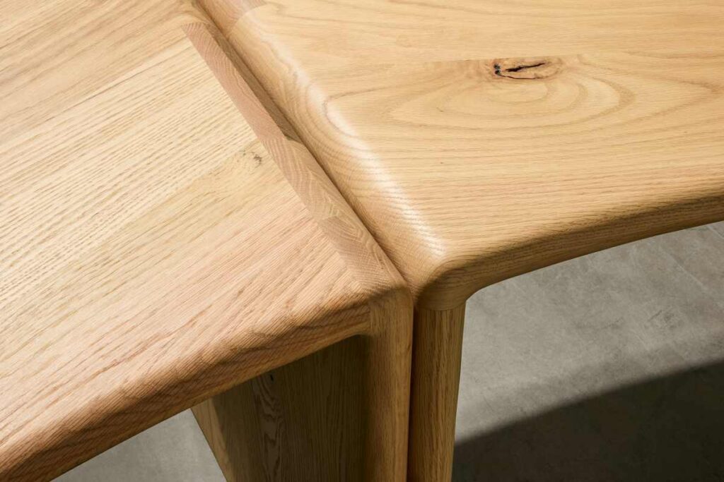 L’ispirazione iniziale per il progetto è nata quando AHEC (American Hardwood Export Council) ha commissionato al produttore di mobili inglese Benchmark il compito di esplorare il potenziale del legno No.1C. Benchmark ha condotto una ricerca pratica come prima fase del progetto, valutando le possibilità tecniche, estetiche e pratiche dell’utilizzo di questo grado di legno nei mobili. L’obiettivo non era solo spingere i confini tecnici, ma anche esplorare i benefici dell’utilizzo del No.1 Common in termini di efficienza del lavoro e rendimento.