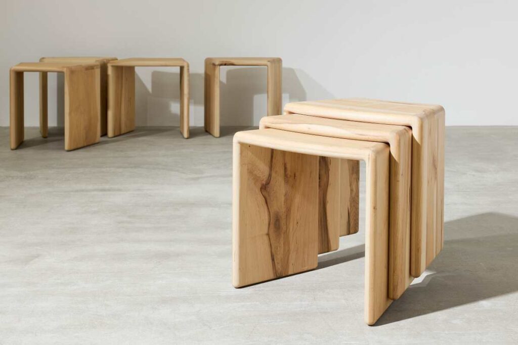 Dopo questa fase iniziale, il team AHEC ha commissionato a tre designer il compito di sviluppare pezzi che evidenziassero la bellezza e il potenziale di questi legni sostenibili No.1 Common. Il loro focus è mostrare sia l’appeal estetico che i benefici pratici del materiale, creando design che riflettano le qualità del Number 1 Common mentre contribuiscono a un futuro più sostenibile.